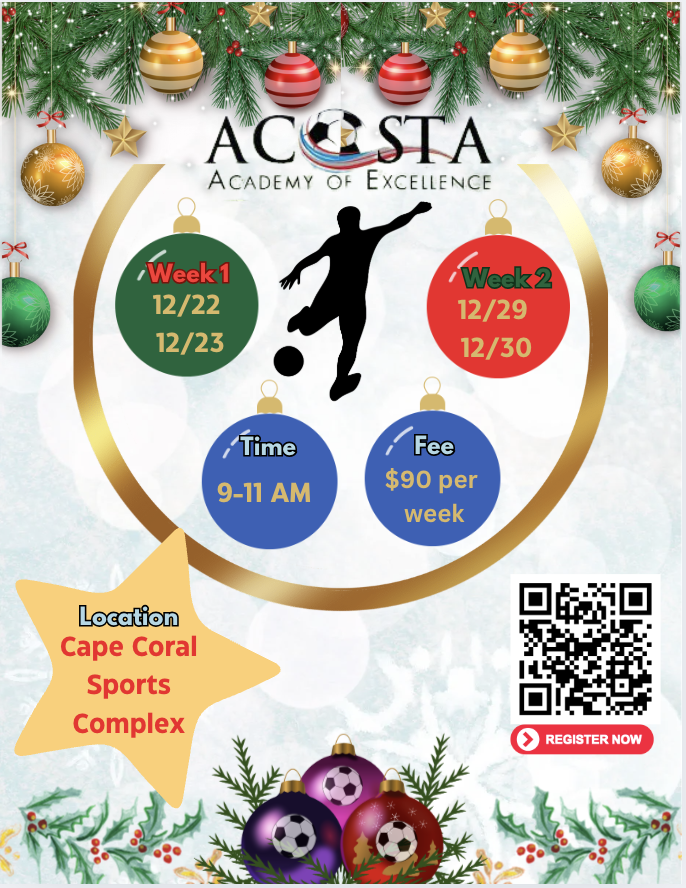 Acosta Academy soccer camps are training opportunities during those long breaks from school and can be offered for 2-5 days. Led by USSF licensed coaches you can be sure players will be in an age and skill level appropriate environment to suit their developmental needs whether elite or recreational.